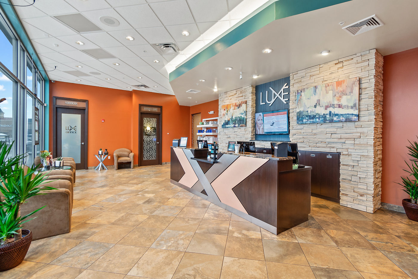 Located in The Crossing at Conestoga Shopping Center, Massage LuXe features a thoughtfully arranged space that balances function and comfort. The layout includes a reception lobby, quiet lounge, private staff area and office, and 13 specialty massage rooms. With only 108 days to complete, the project was delivered on time and on budget.