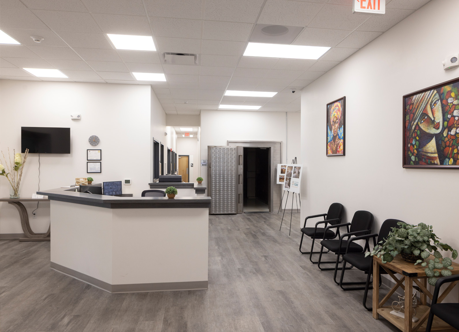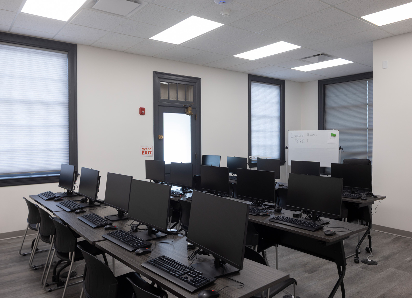 Tec Centro York transformed a former bank into a bilingual workforce development center offering training in high demand fields such as healthcare, culinary arts, and construction. The renovation preserved the building’s historic façade and operational ATM while adding classrooms, labs, and offices to support job training and economic growth in the community.